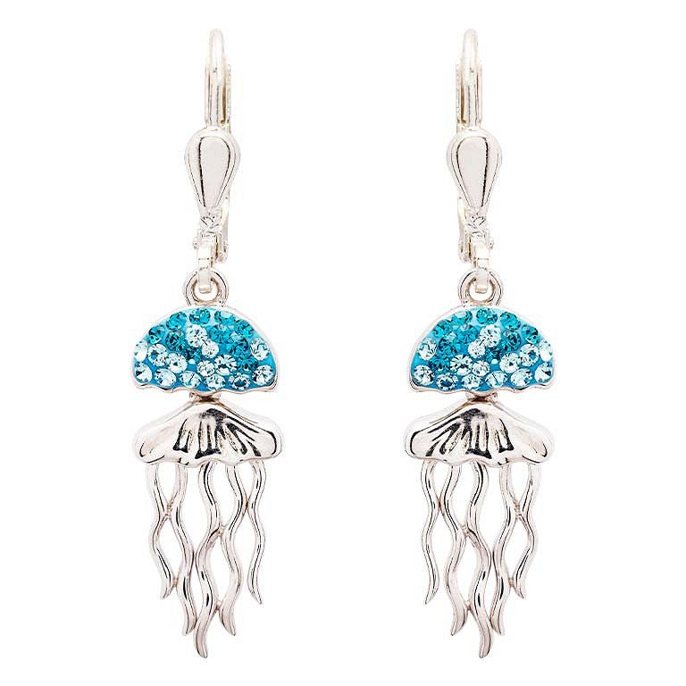 Sterling Silver Jellyfish Earrings with Aqua Crystals - OC503