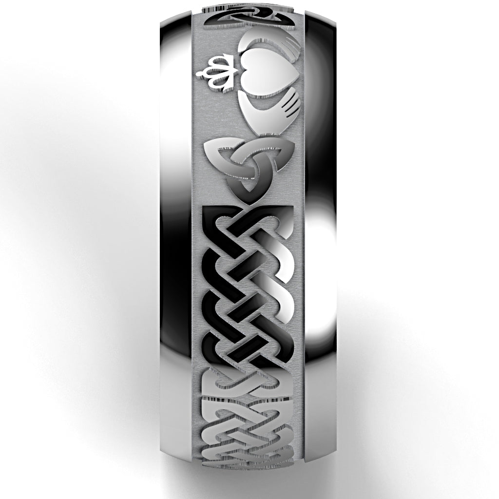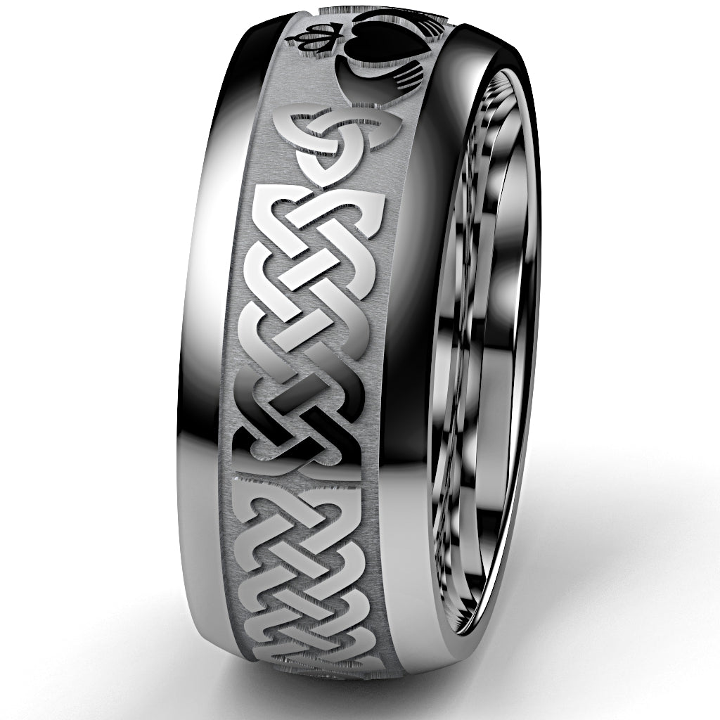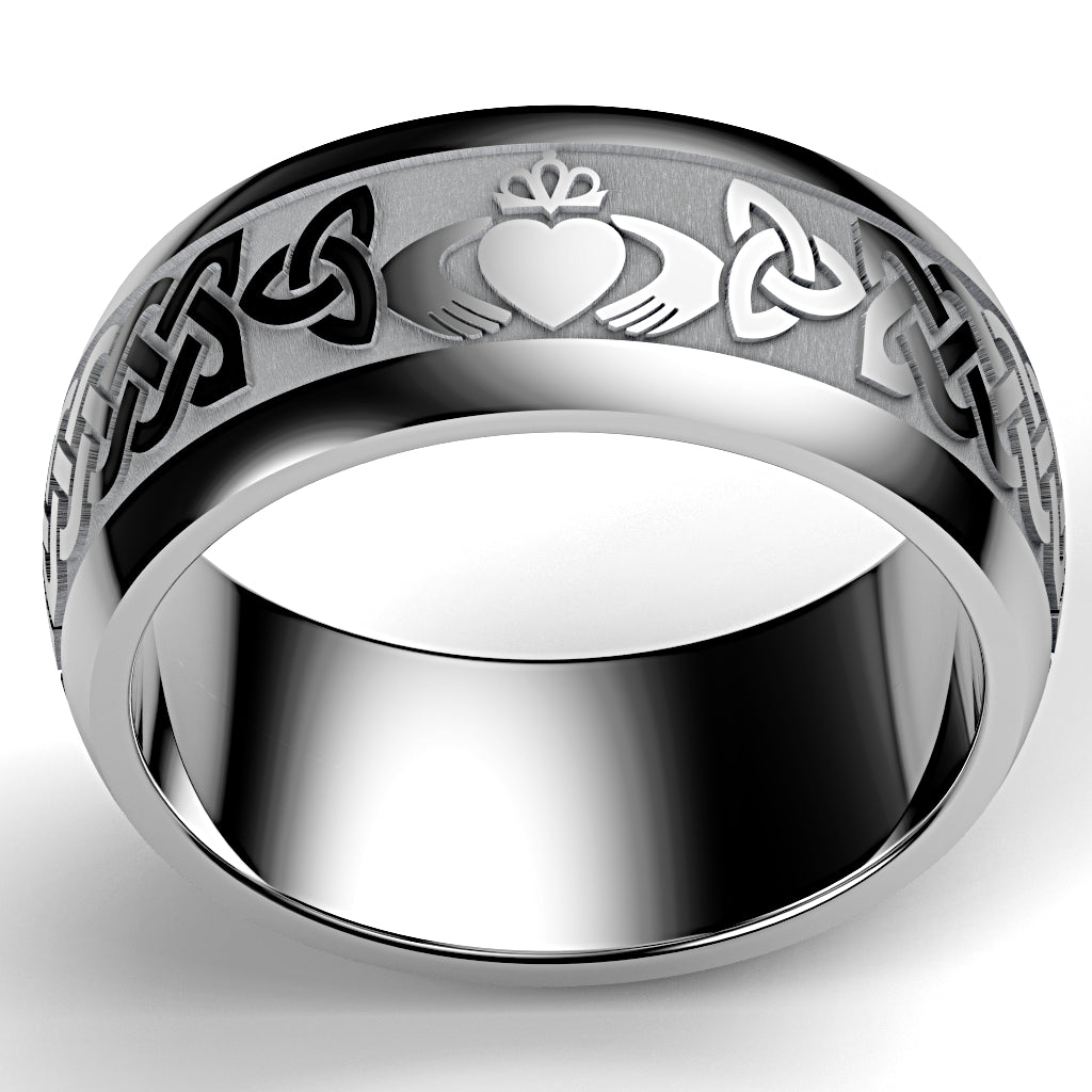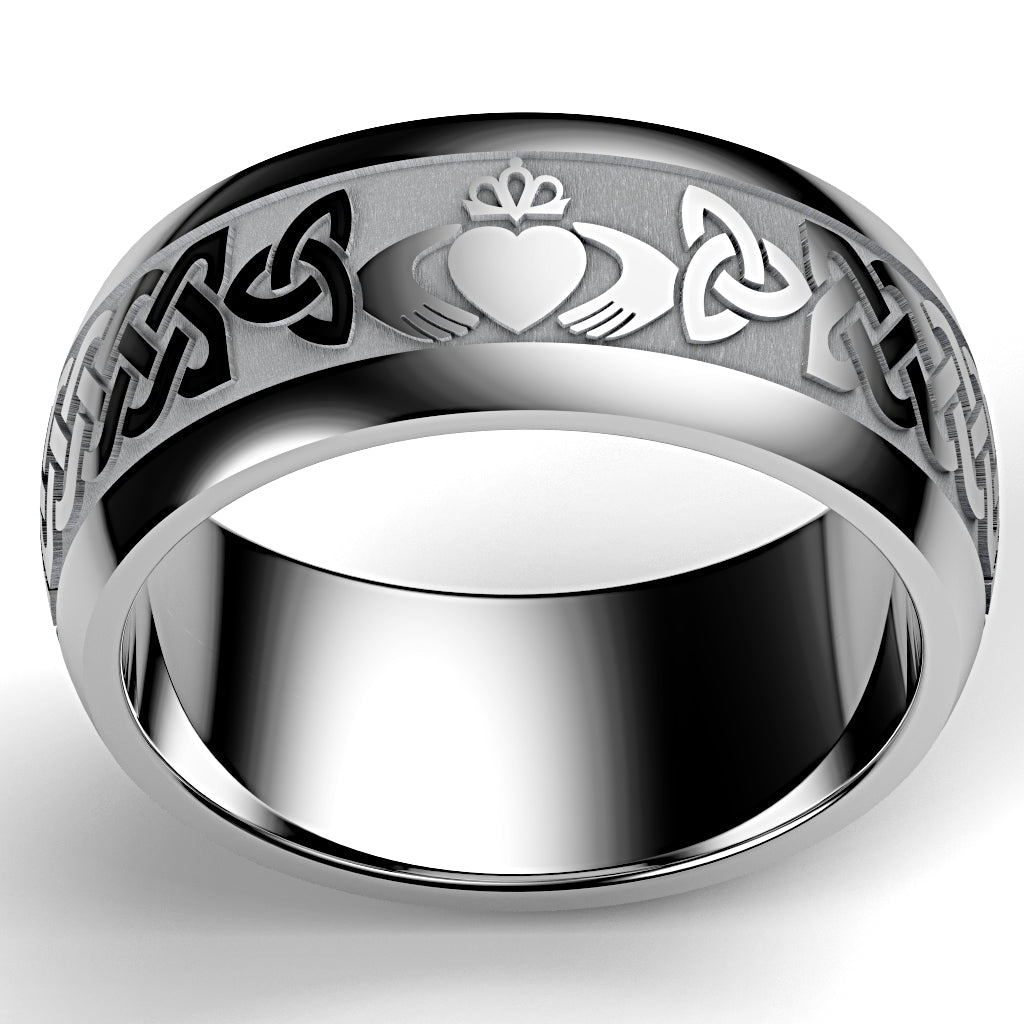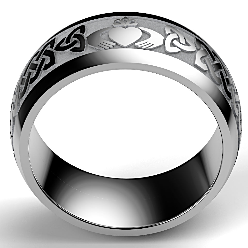 Tungsten Claddagh Wedding Ring – UCL1-TUNG10M- THICKRAIL